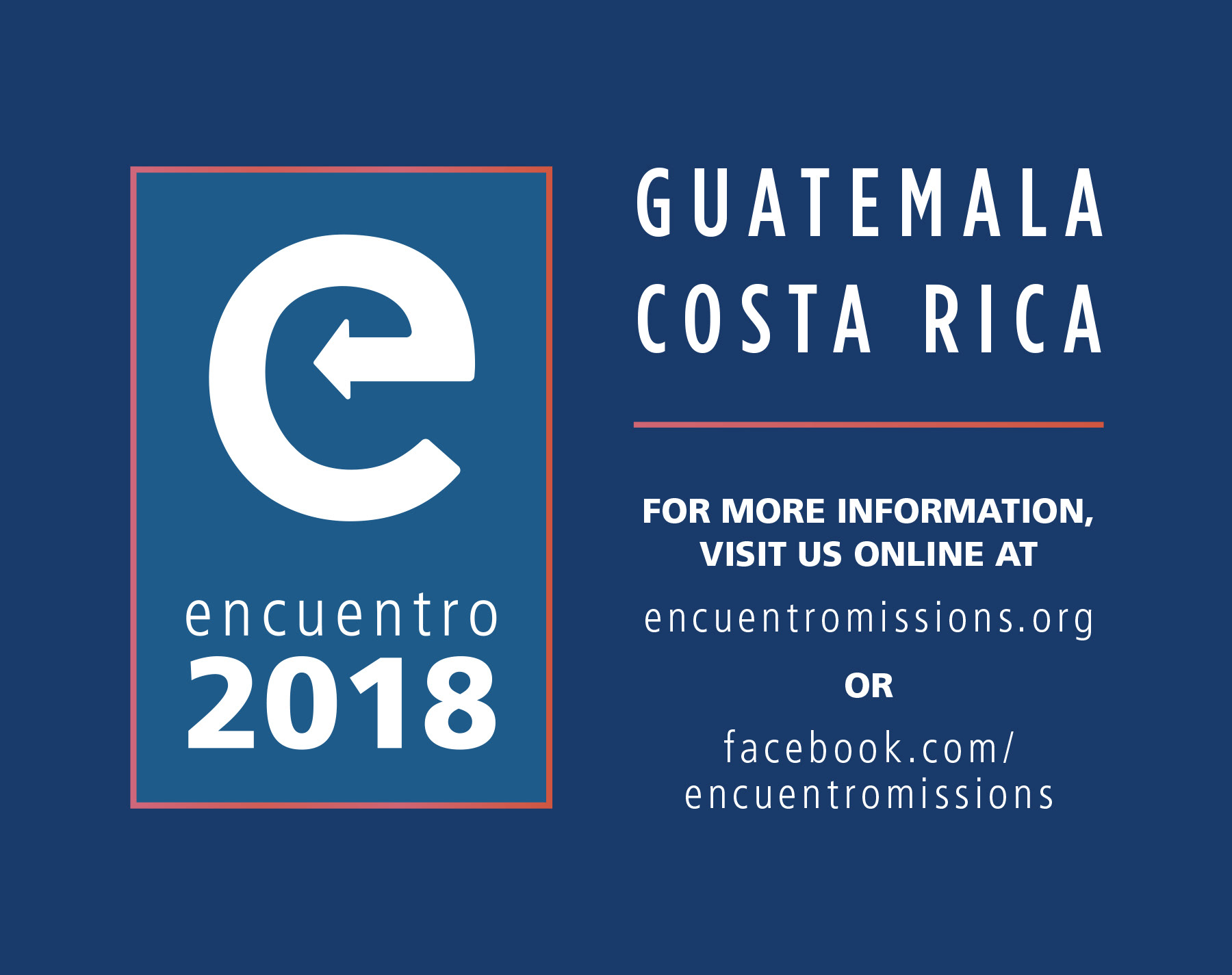 Encuentro is an organization that provides mission opportunities for teens in families. When Encuentro changed leadership after their 2016 mission trip to Puerto Rico, I was in charge of rebranding the organization in time for the 2018 trips to Guatemala and Costa Rica. In July 2018, I traveled down to Guatemala in order to document the trip.